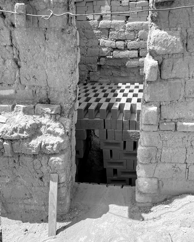 Al principio está la tierra arcillosa de color rojo oscuro. Macadonio la moldeó, la cocinó y la apiló. Se suministró en lotes de 1000 piezas y Leopoldo se encargó de su procesamiento. Conocer la historia de su origen crea una relación con las personas y con el espacio construido. Es la relación la que crea el valor.